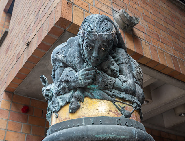 This is one at f/5.6 and 33mm. As you see, you get only mild background blurriness with minimal object separation. However, I wanted DOF big enough to get the complete sculpture in sharpness. The image needed editing, because the light was bad. There is also some dodge and burn to make the face of the child more prominent.